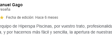 En Hiperspa Piscinas llevamos más de 20 años ayudando a familias y propietarios a disfrutar de piscinas saludables y cristalinas, con nuestra experiencia, sumada a un trato cercano y profesional, nos ha convertido en la tienda de referencia en Alpedrete y en la Sierra de Madrid. Nuestra misión es clara: ofrecer soluciones profesionales, duraderas y de la máxima calidad, siempre con un trato cercano y transparente. Dos décadas trabajando con piscinas de todos los tipos nos han enseñado una cosa: